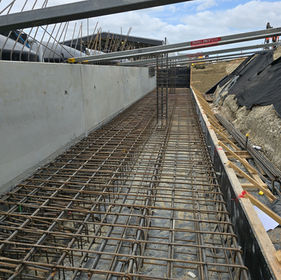 This project involved the design of 3000m2 of Warehousing and 1200m2 of Office Space. In addition to the main foundations, significant enabling works included large retaining walls constructed of concrete piles and cantilever insitu & precast concrete.